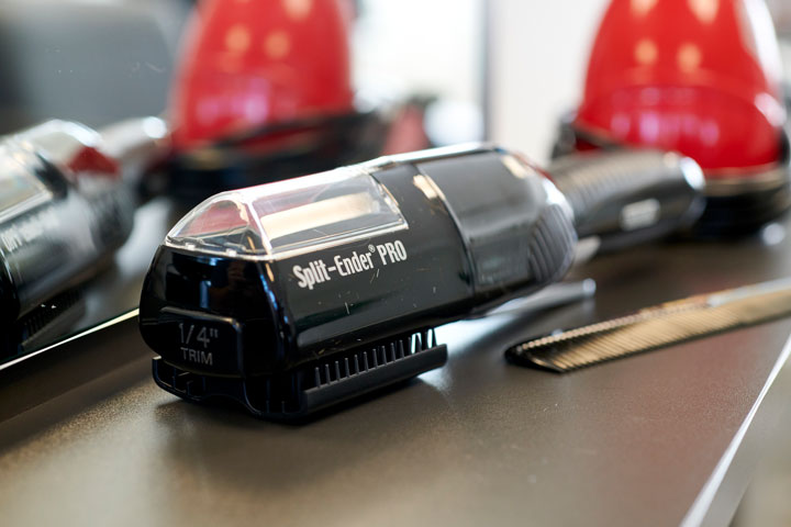 Er entfernt nur die beschädigten Haarspitzen, ohne die Länge zu schneiden.